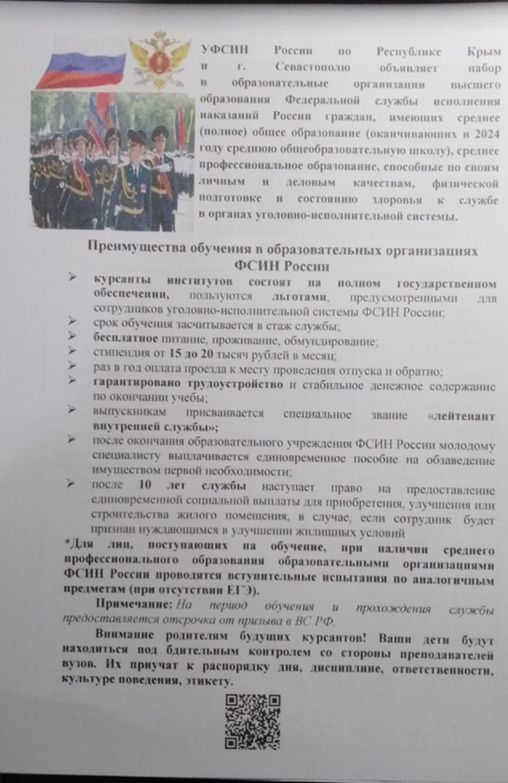 Профориентацтонная встреча выпускников с представителем УФСИН России по Республике Крым и г. Севастополю