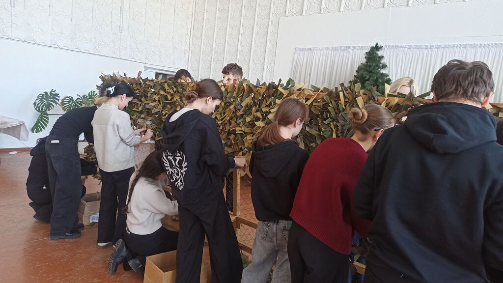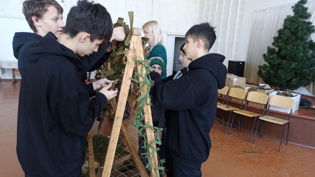 После мероприятия ребята учились плести маскировочные сети, которые помогут нашим защитникам в трудную минуту.